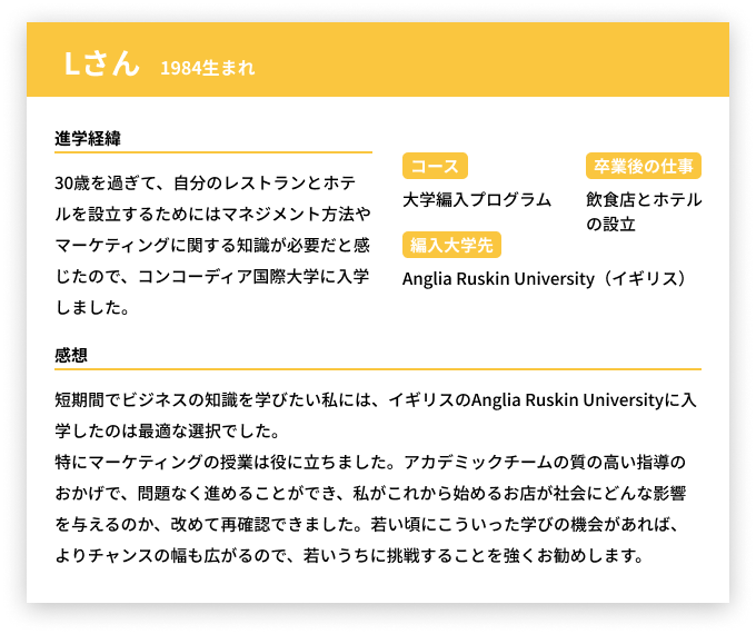 通常の海外大学は4年間で卒業しますが、 コンコーディア国際大学はその半分の2年間で卒業できるので、余った時間を有効に活用できます。