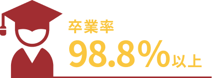 一般的な海外大学の卒業率は、55%と言われています。 コンコ―ディア国際大学は徹底的に大学で必要となる課題・論文対策をチューターと一緒に進めていくため、98.8%以上の人が卒業しています。